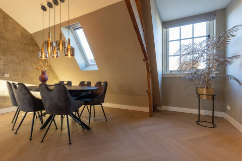 Dit prachtig gerenoveerde en volledig gemeubileerde appartement in de stad Hilversum beschikt over drie slaapkamers. Twee van de slaapkamers zijn voorzien van een tweepersoonsbed, terwijl de derde slaapkamer twee eenpersoonsbedden heeft. Het appartement biedt een unieke ervaring met een vide waarop een van de slaapkamers is gesitueerd. Daarnaast heeft het een ruim balkon dat grenst aan de gezellige woonkamer. De badkamer is uitgerust met zowel een aparte douche als een ligbad