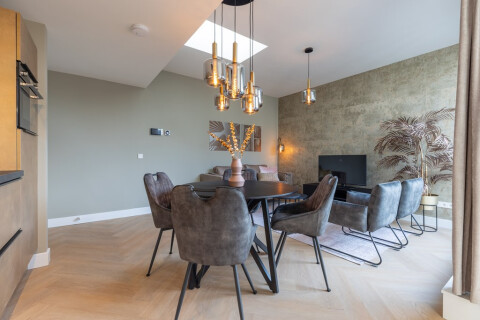 De keuken is voorzien van hoogwaardige, state-of-the-art apparatuur. In de woonkamer kun je genieten van een luxe zitgedeelte of gebruikmaken van de ruime eettafel. Een smart-tv is aanwezig in de woonkamer. De woning is uitgerust met zonnepanelen en een slim verwarmingssysteem voor optimaal comfort